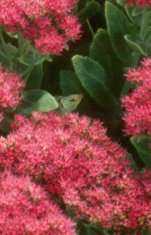 | Description: Similar to 'Autumn Joy', but developed in Quebec for its brightly colored, rosy flowers from late summer into fall; tighter growth habit and thicker foliage.