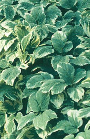 | Description: Vigorous, dense foliaged ground cover; white flowers in June. Spreads by underground stolons. |